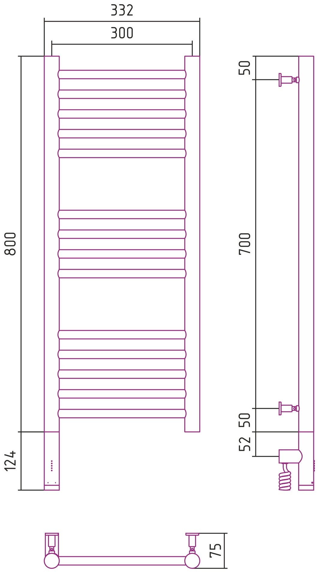 Полотенцесушитель электрический 800х300 МЭМ левый, перемычка прямая Сунержа Богема 3.0 00-5804-8030