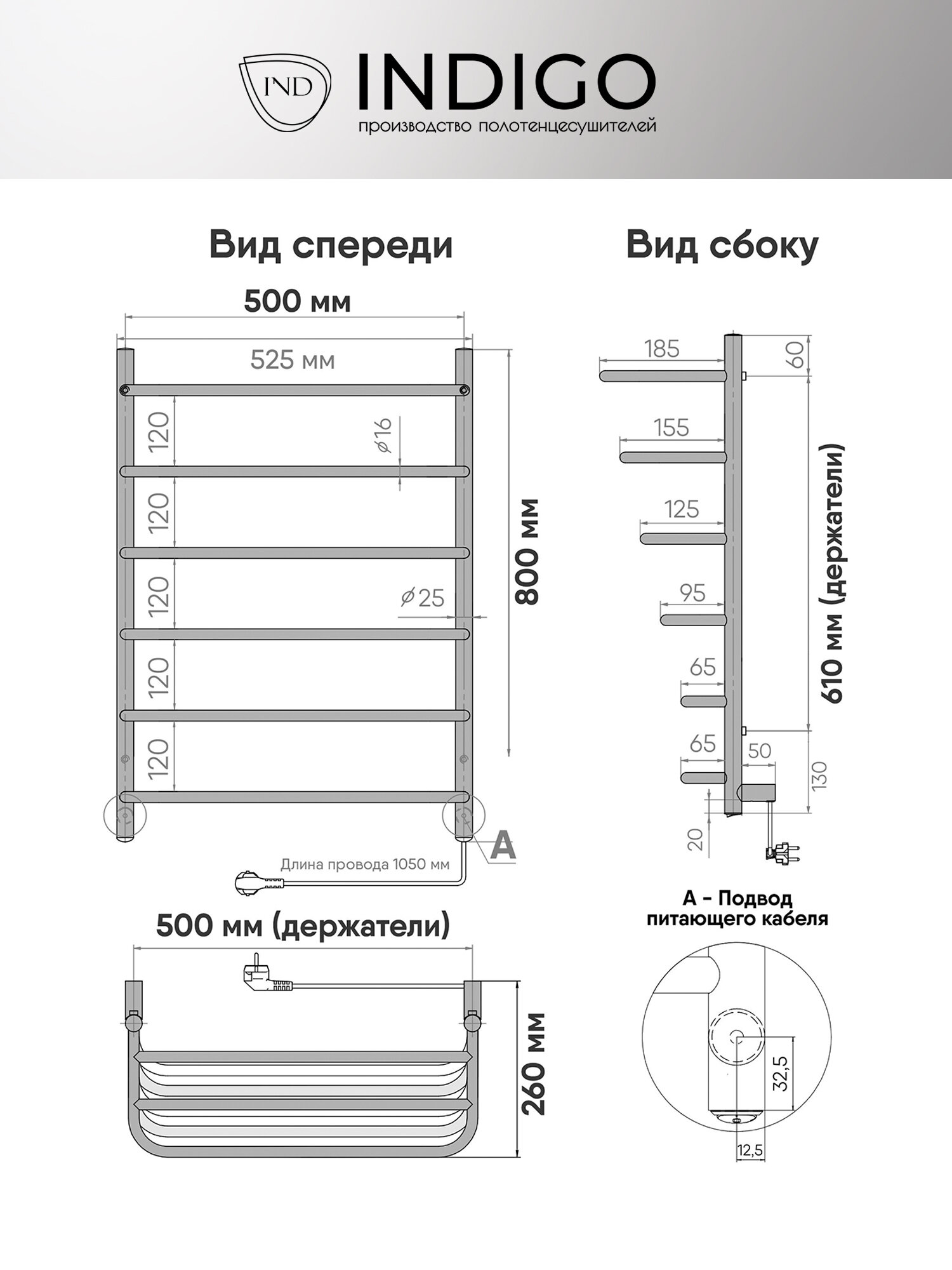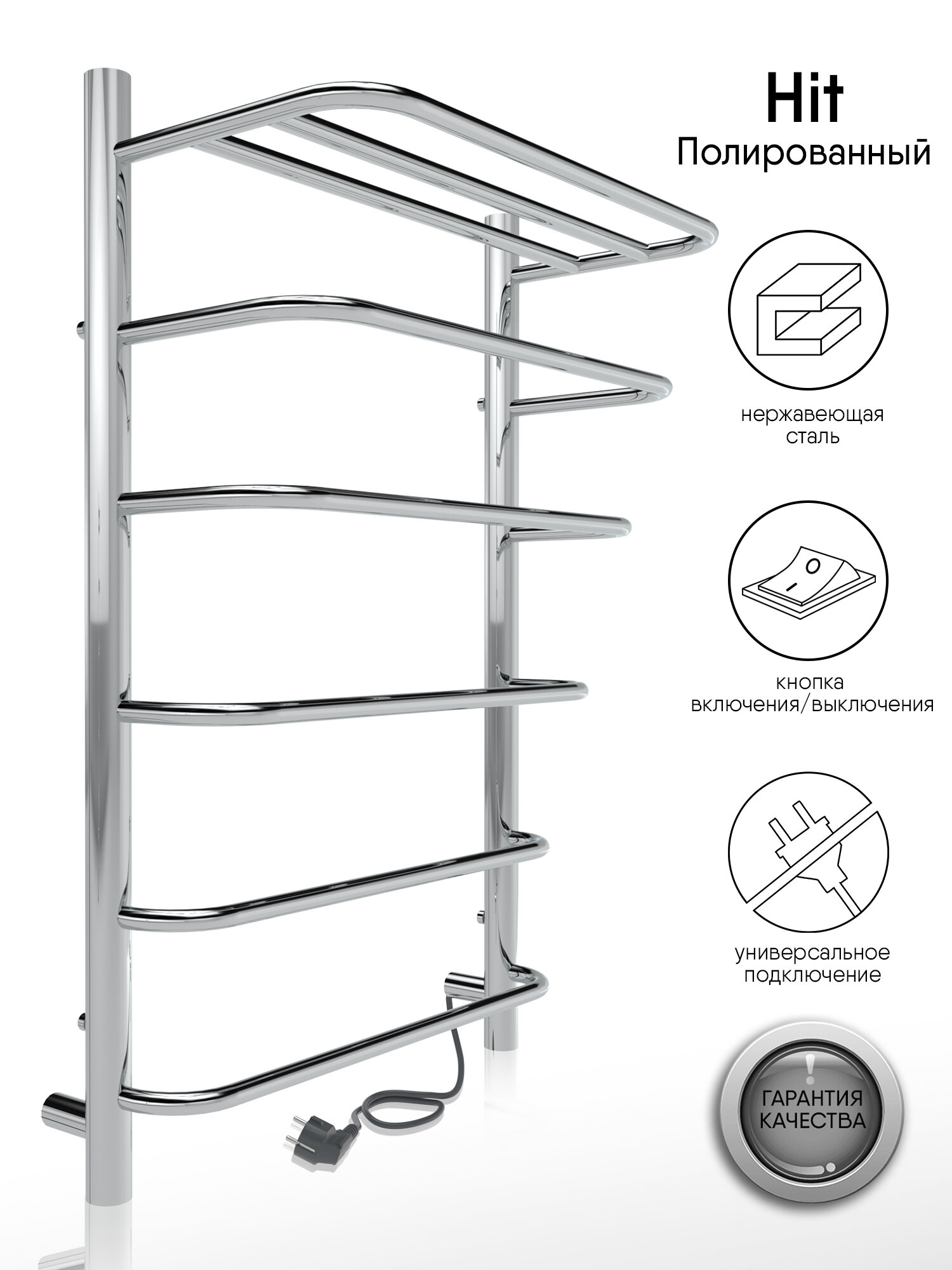 Полотенцесушитель электрический INDIGO Hit 80x50 универсальное подключение полированный