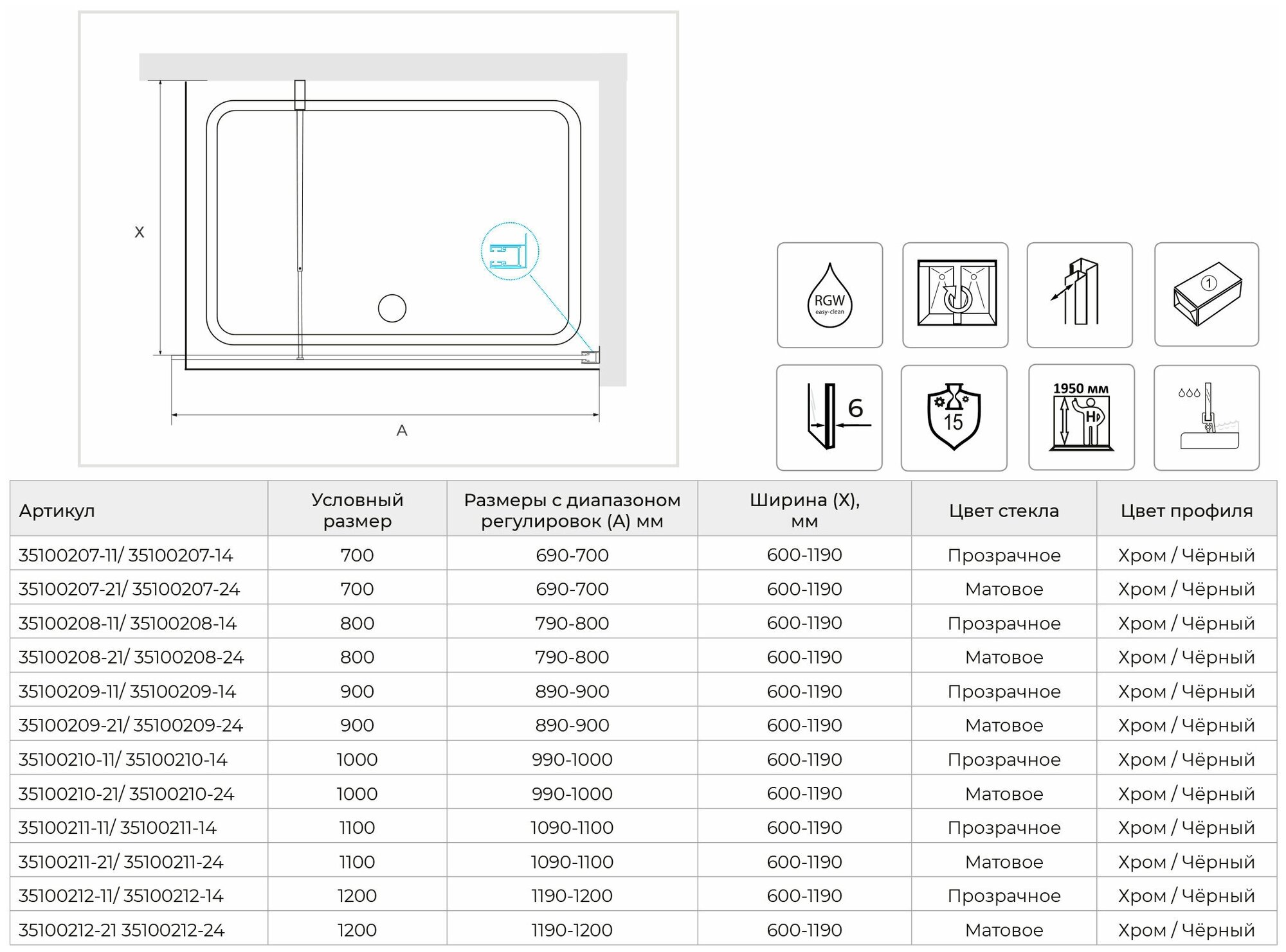 Душевая перегородка RGW Walk In WA-002B 1000х1950 черный 35100210-14 интересное: