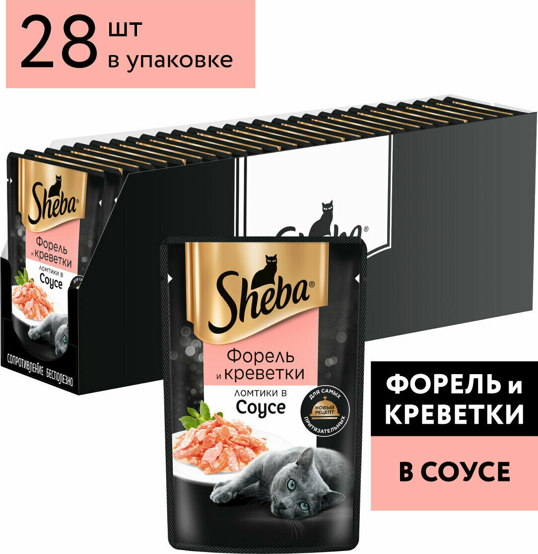 Sheba влажный корм для кошек ломтики с форелью и креветками, в соусе, в паучах - 75 г х 28 шт