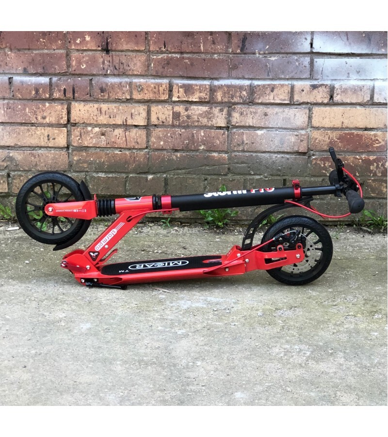 Самокат двухколесный MICAR Storm Pro c колёсами 200 мм, складной с амортизаторами и ручным дисковым тормозом красный