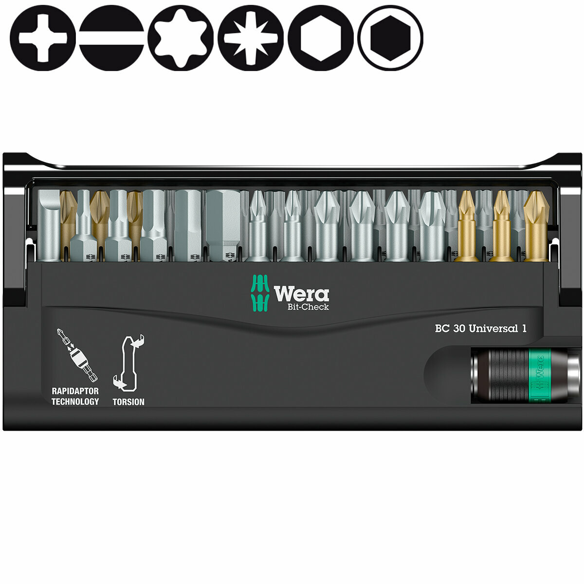 Купить Bit-Check 30 Universal 1 набор бит с битодержателем Rapidaptor, 30 пр., 1/4" C6.3 WERA WE-056440