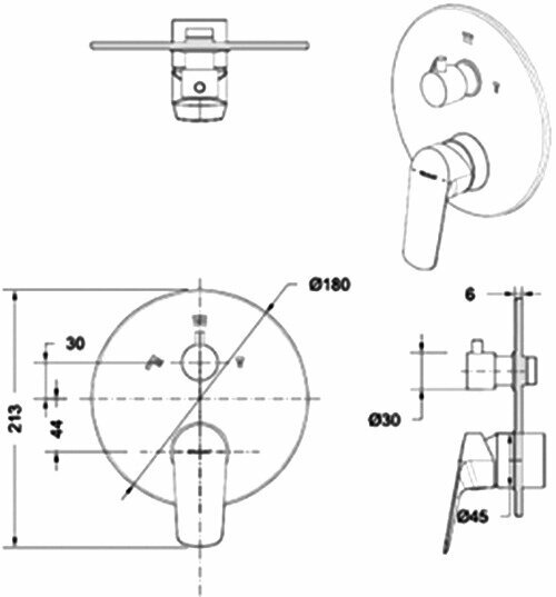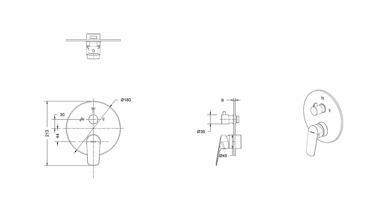 Встраиваемый смеситель (3-функц) Bravat Rhein PB8429564BW-3-ENG
