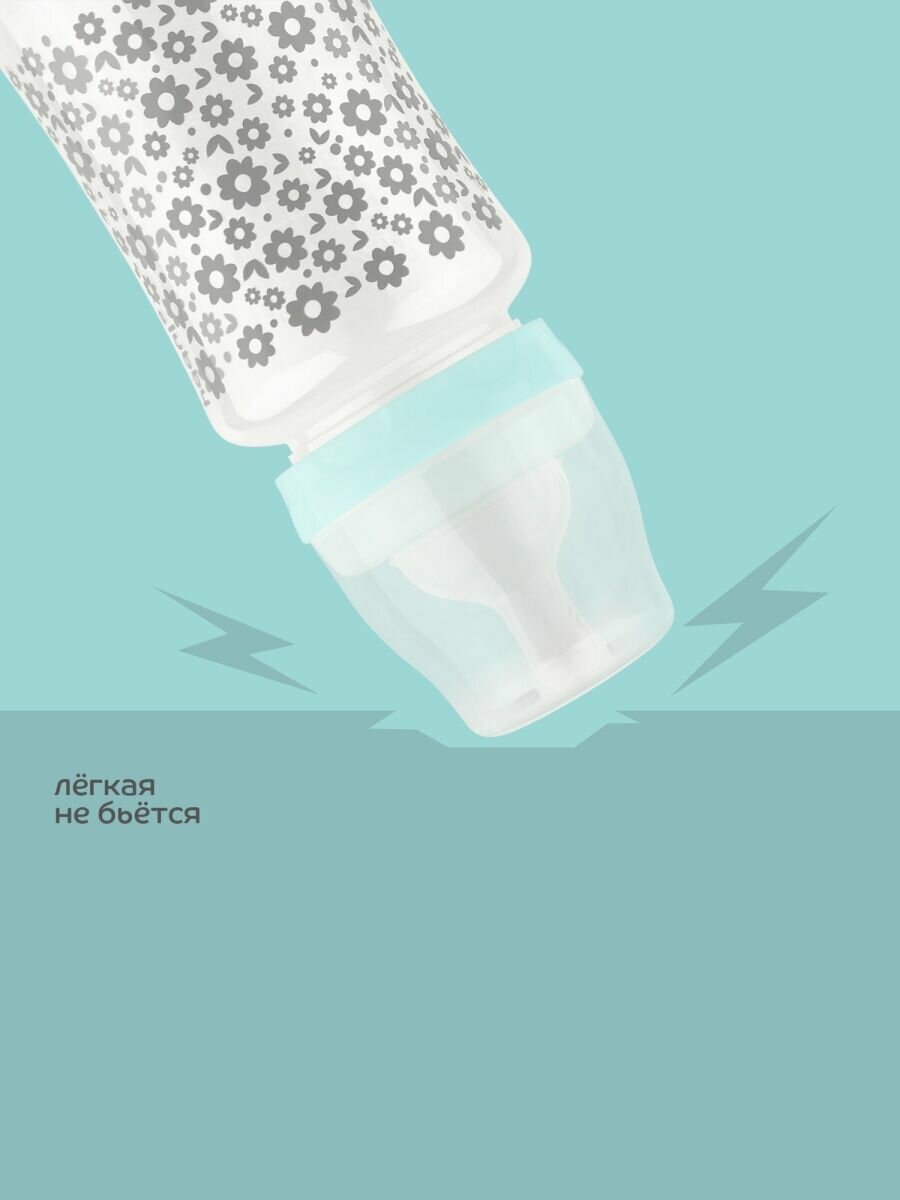 Lubby Бутылочка Цветочки из ПП с широким горлом и силиконовой соской 250мл 0+