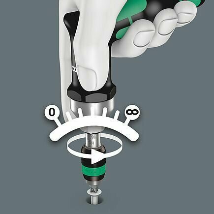 Динамометрическая отвертка WERA 7400, регулируемая, 3,0-6,0 Nm, с быстросменным патроном Rapidaptor, пистолетная ручка 074702