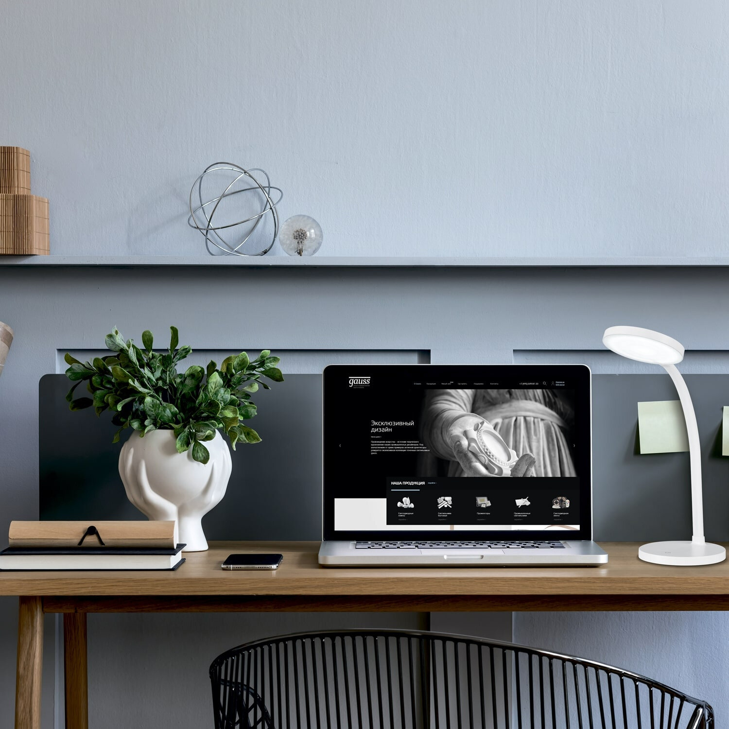 Лампа настольная светодиодная 8W 500lm 4000К диммируемая Gauss Qplus