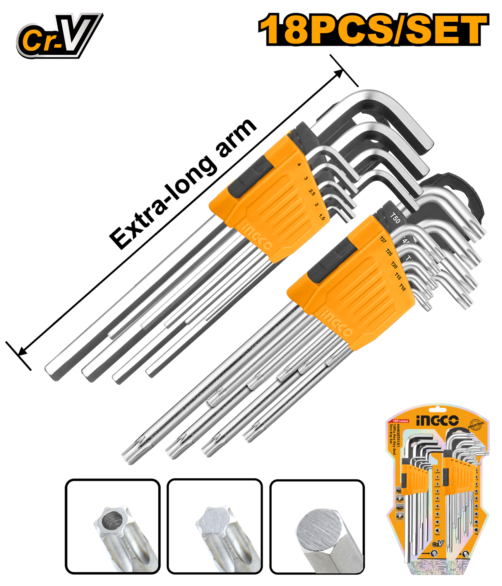 Набор шестигранников HEX 1,5-10 мм и TORX Т10-Т50 INGCO HHKSET0181 INDUSTRIAL 18 шт.
