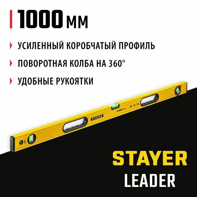 STAYER LEADER 1000 мм уровень строительный фрезерованный