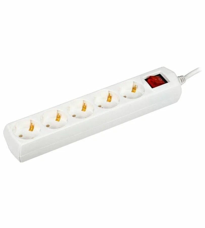 Удлинитель с выключателем Generica У05В, ПВС 3 x 1 мм², с заземлением, 5 розеток, 7 м, белый
