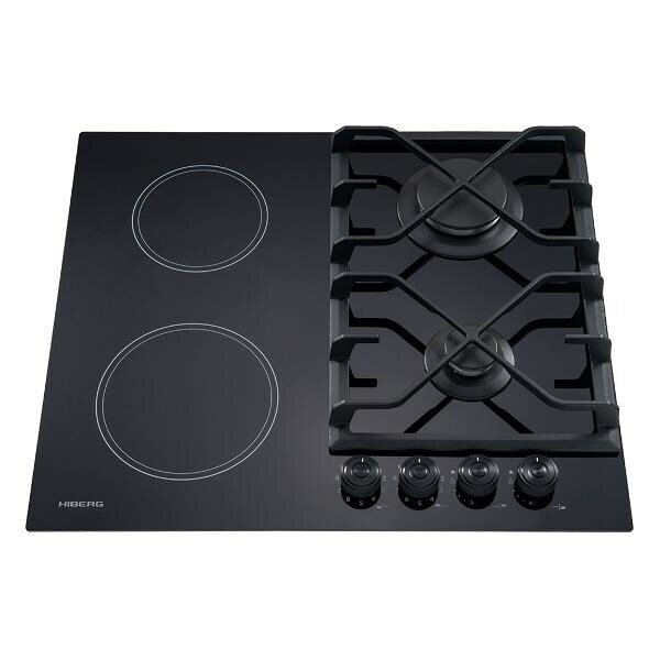 Варочная поверхность HIBERG VM 6020 B комбинированная, газоэлектрическая, стеклокерамика, электророзжиг, газ-контроль, черный