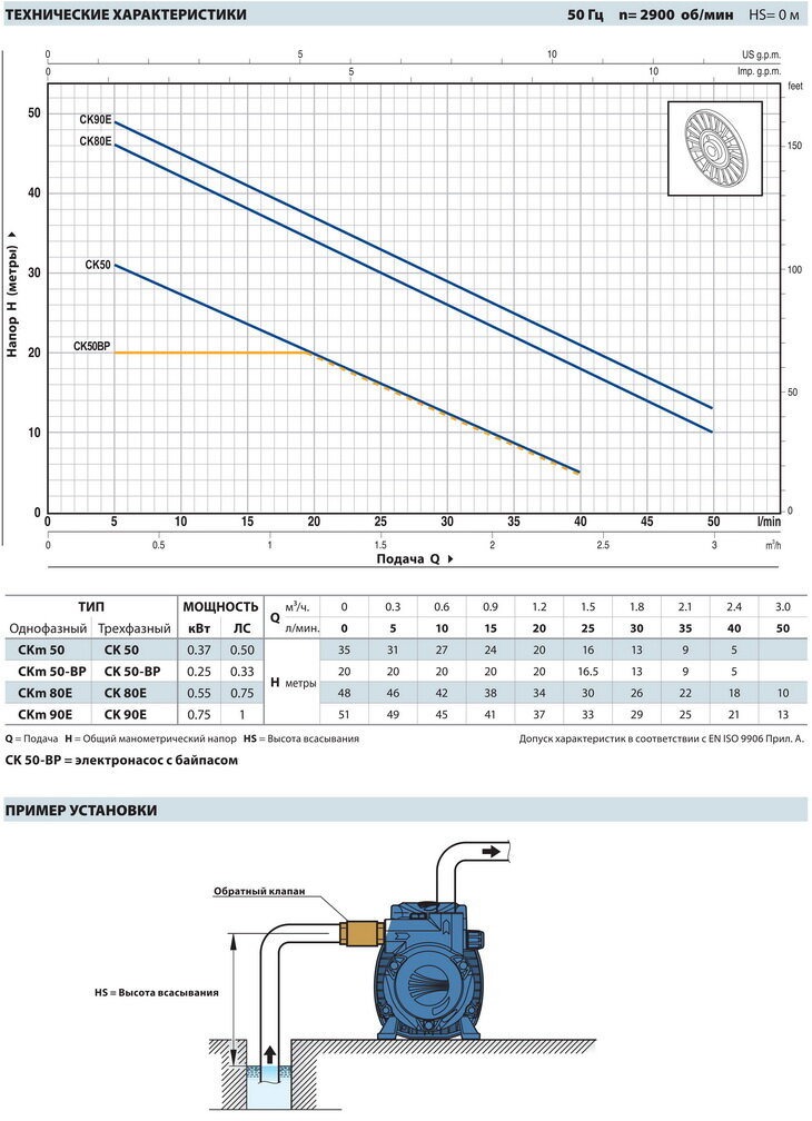 Насос самовсасывающий Pedrollo CKm 90-E (0,75 кВт, 1x230 В, PN6, Qmax 50 л/мин, Hmax 51 м) интересное: