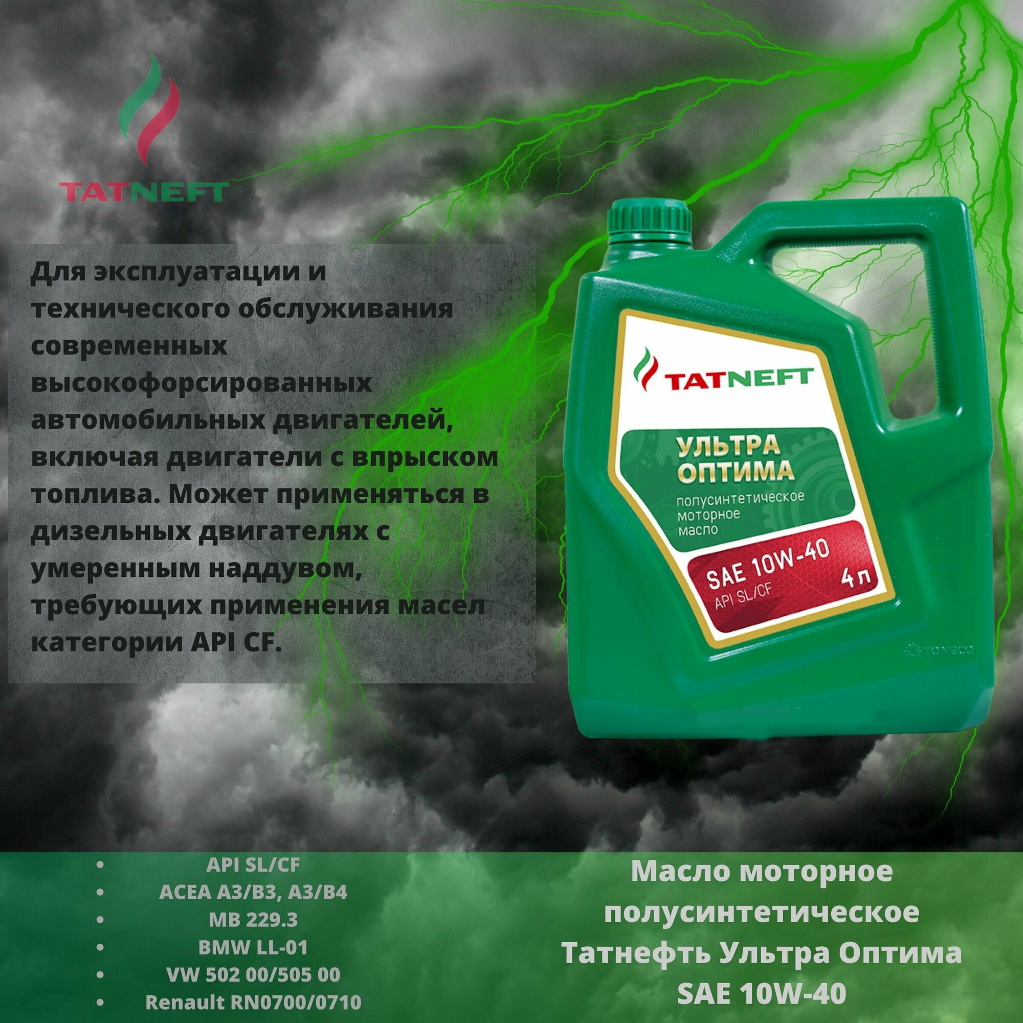 Масло Татнефть Ультра-Оптима моторное 10W40 (полусинтетика) 4 л SL/CF