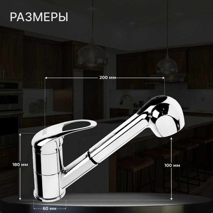 Смеситель для кухни ZEIN Z1301, однорычажный, с выдвижной лейкой, хром ZEIN 5799984 .