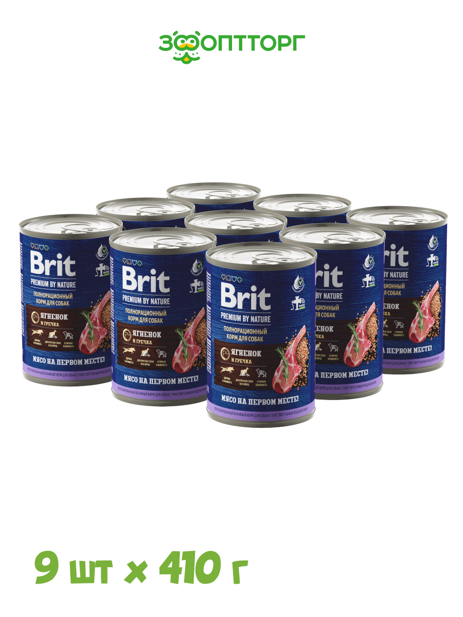 Корм Brit Premium By Nature (консерв.) для собак с чувствительным пищеварением, ягненок и гречка, 410 г x 9 шт