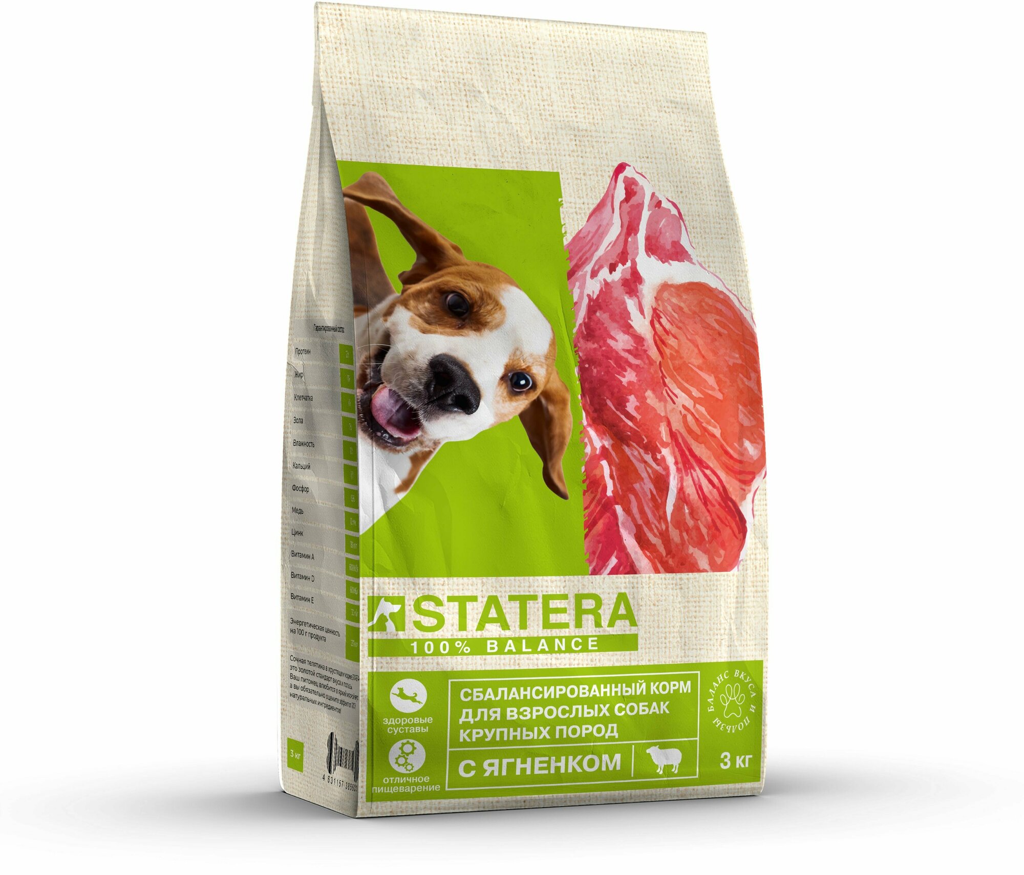 Statera - Сухой корм для взрослых собак крупных пород, с Ягненком (3 кг)