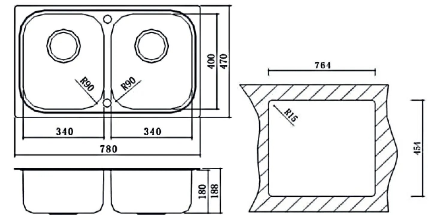 Мойка нержавеющая для кухни OULIN 780х470 OL-S8905