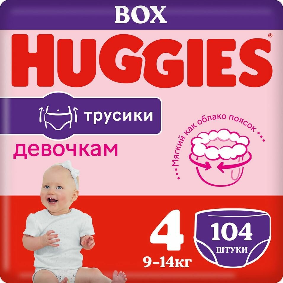Подгузники трусики Huggies для девочек 9-14кг, 4 размер, 104шт