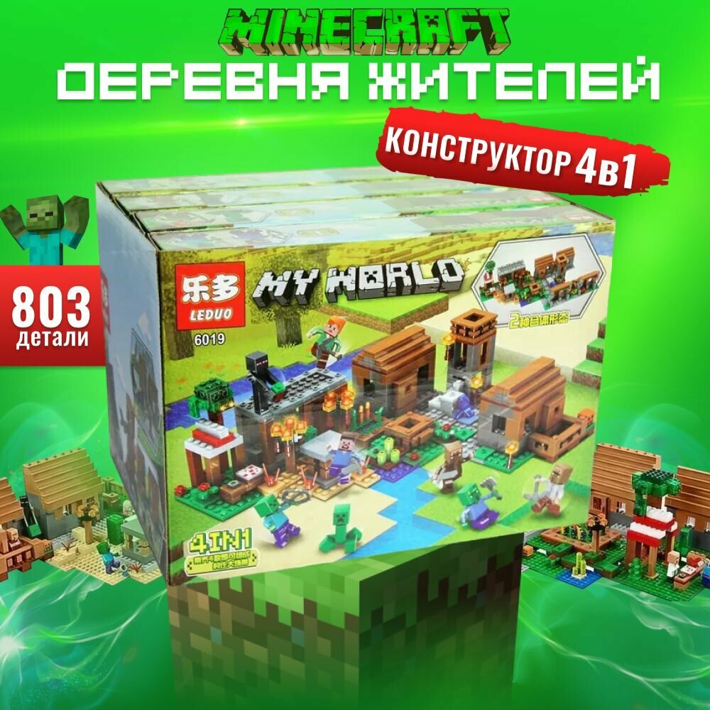 Конструктор Leduo My World "Деревня с жителями" 4 в 1 - Майнкрафт 803 детали
