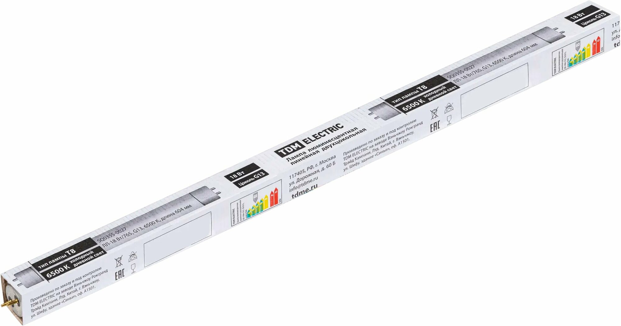 TDM Лампа люминесцентная линейная двухцокольная ЛЛ-18Вт/765, T8/G13, 6500 К TDM SQ0355-0027