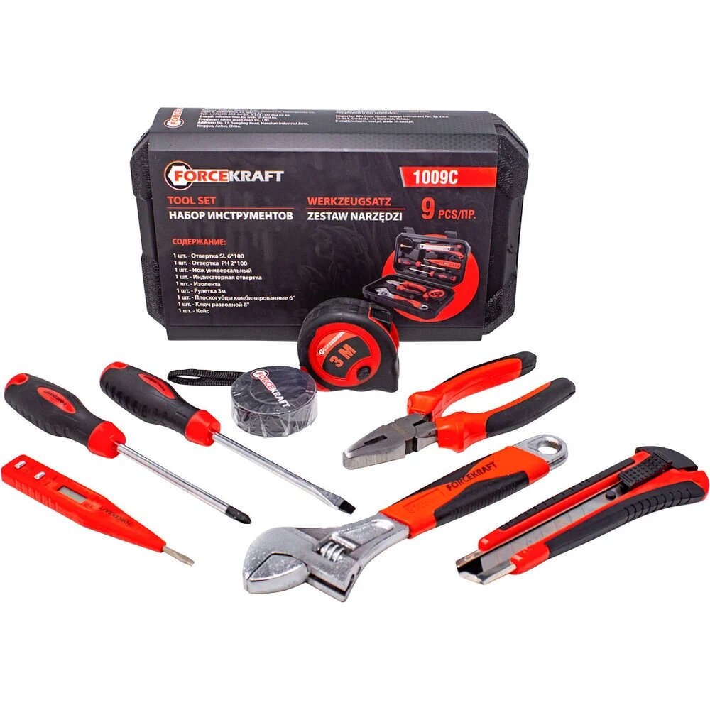 Forcekraft Набор шарнирно-губцевого инструмента с отвертками, в кейсе FK-1009C(51102)