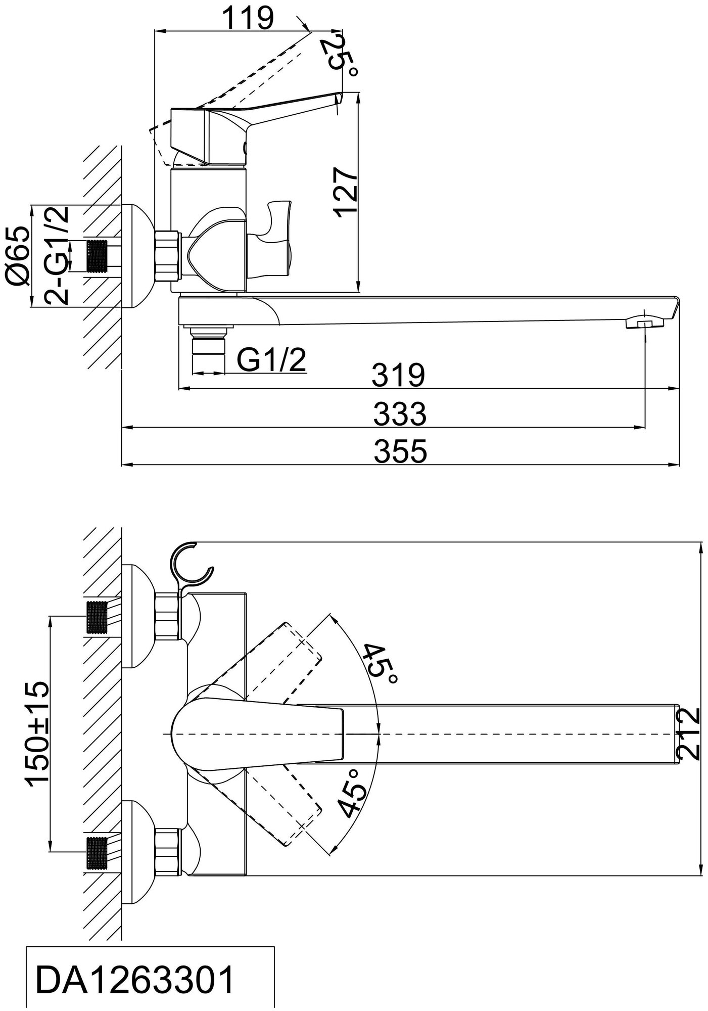 Смеситель для ванны и умывальника 38,5к D&K DA1263301 хром