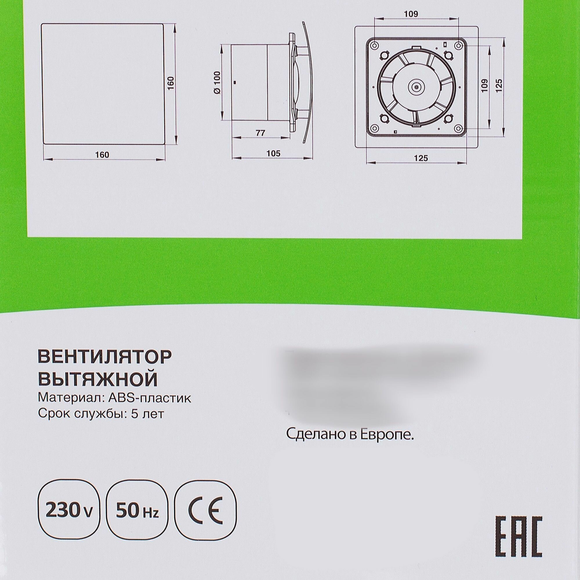 Вентилятор осевой / вытяжка в ванную / вытяжка в туалет d100 мм, белый