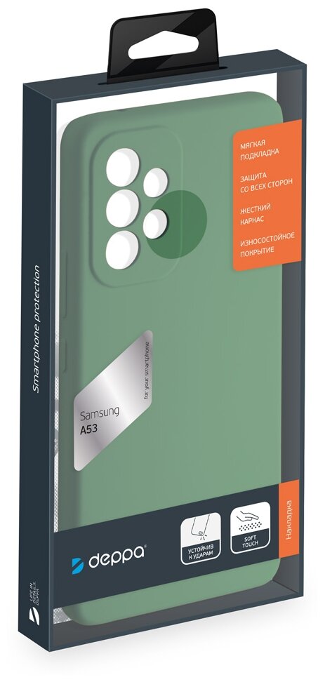 Чехол Liquid Silicone Pro для Samsung Galaxy A53, зеленый, картон, Deppa, Deppa 88205 интересное: