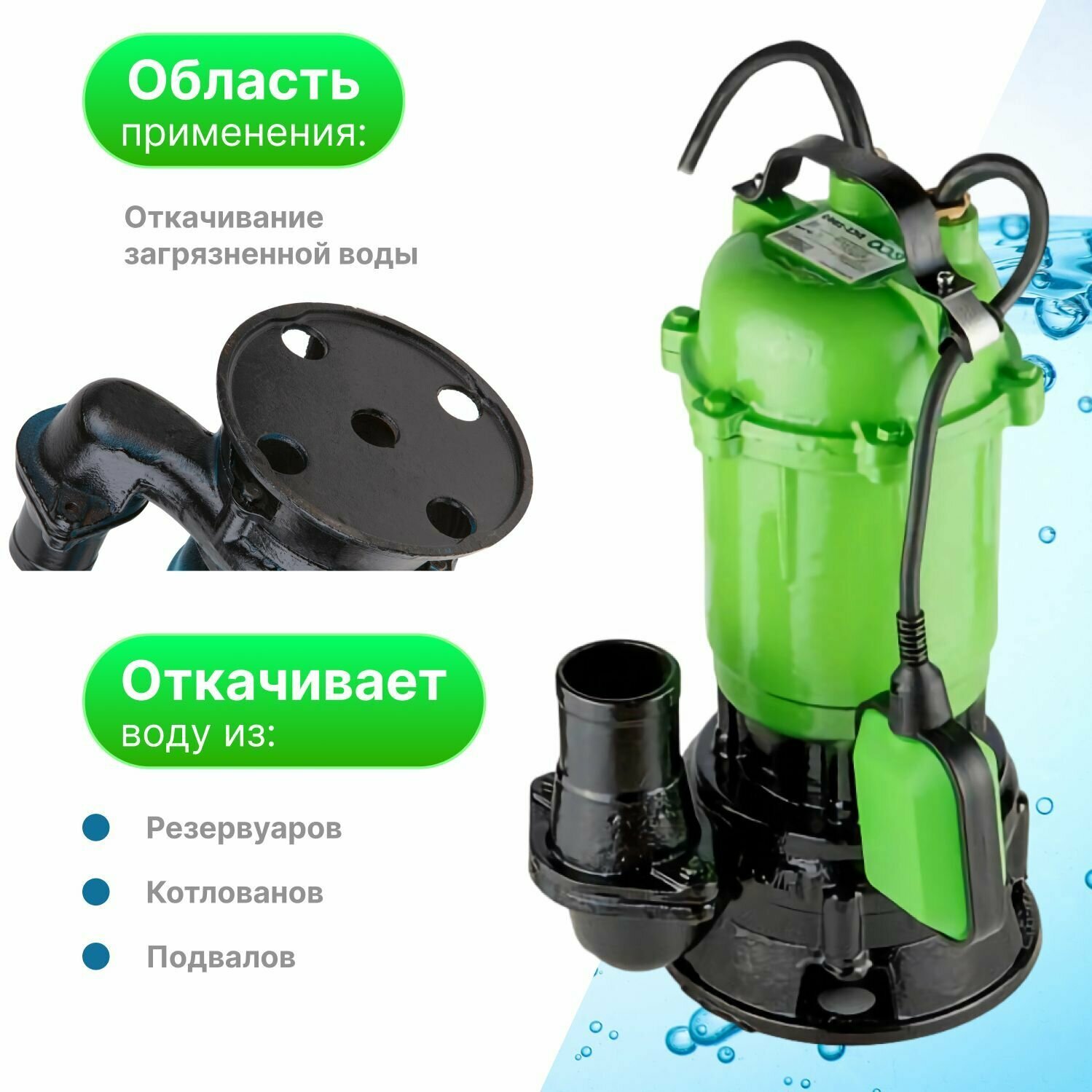 | Тип погружного насоса | Для грязной воды |