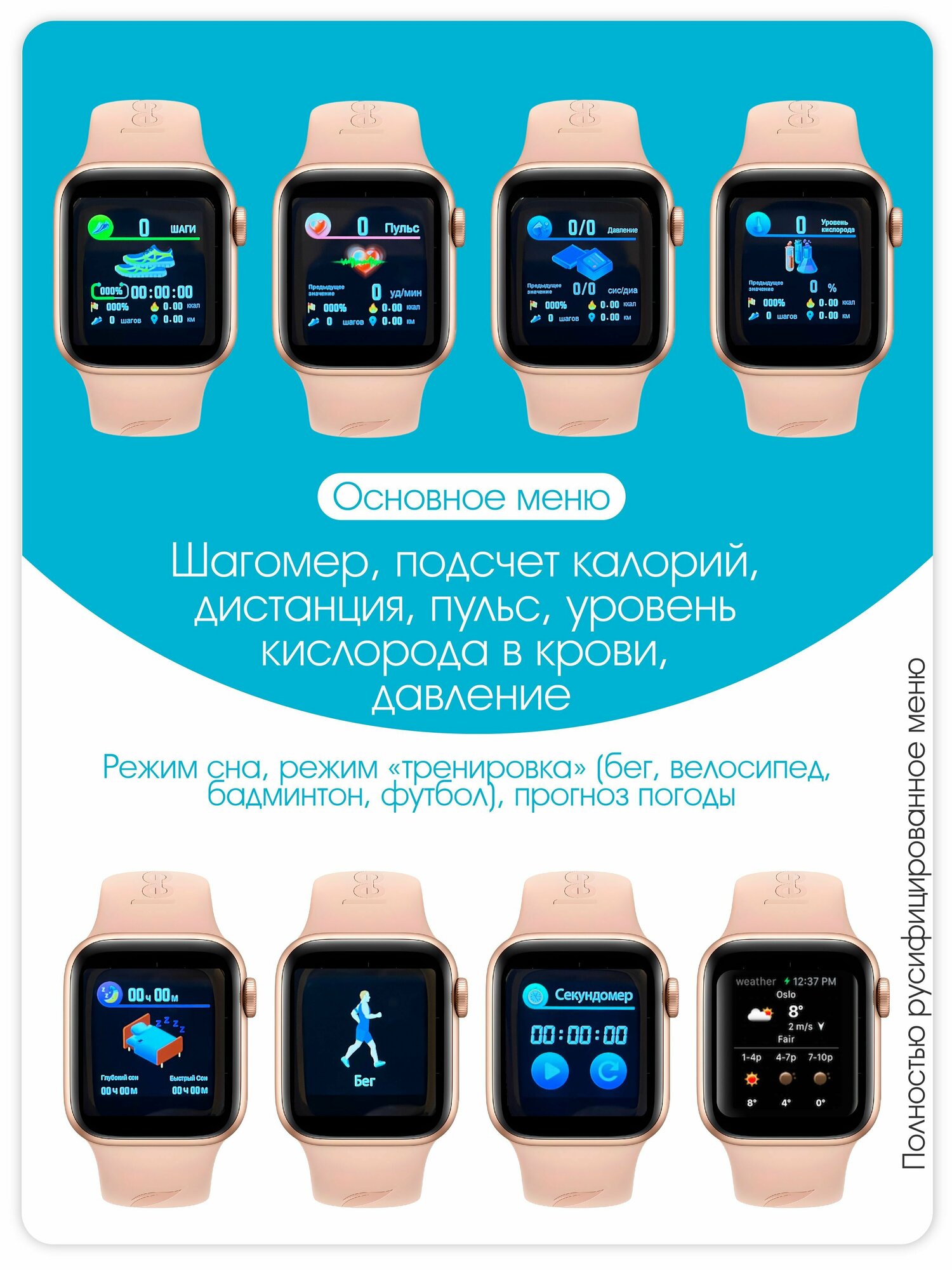 | Отзыв: | На руке смотрятся бомбически! Эта модель и правда, один в один как эппл, только цена доступнее. Цветной дисплей, текст крупный, хорошо читаемый, управление сенсорное. Держат заряд около 5 дней. Есть мониторинги давления, пульса, кислорода, счетчики шагов, калорий и расстояния. Можно режим тренировки выбрать из имеющихся. А еще они круто меряют сон: по фазам и длительности. |