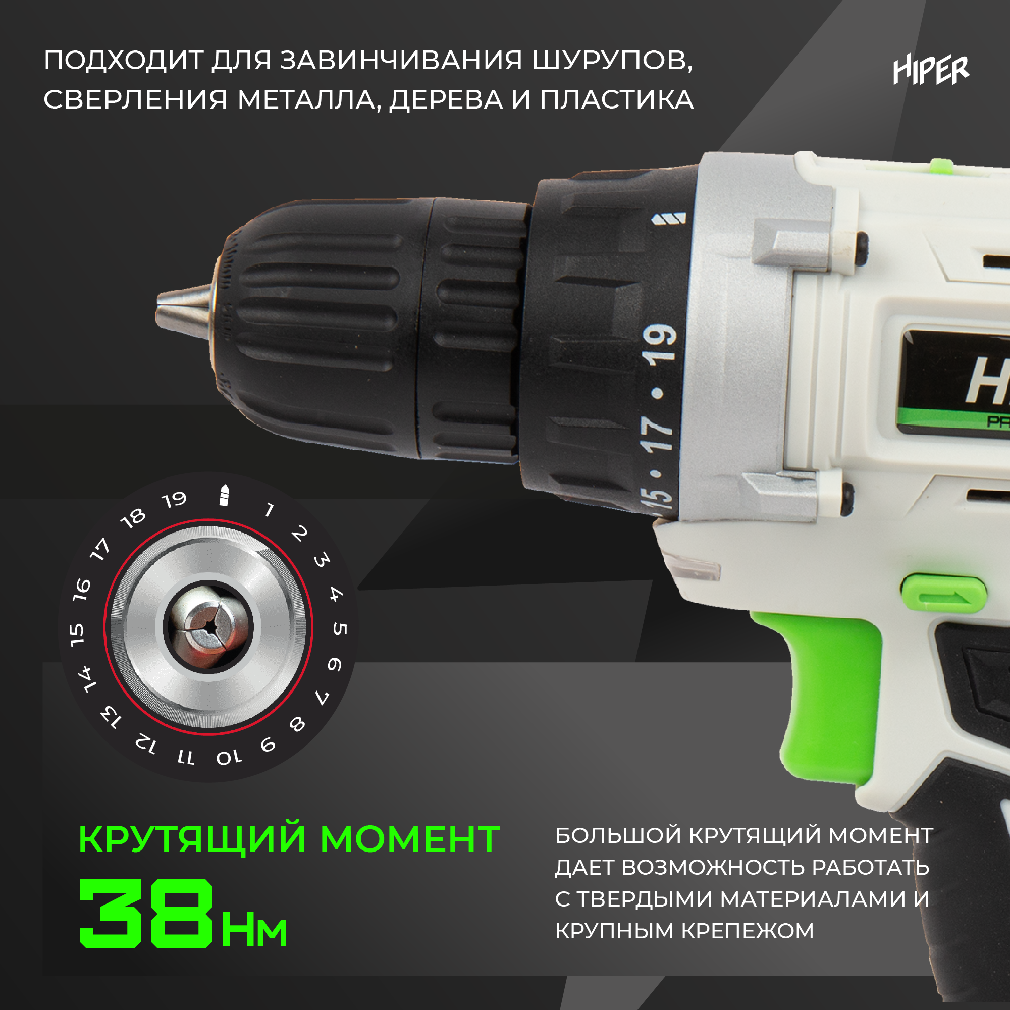 Шуруповерт аккумуляторный HIPER HCD18, 18В, 1 АКБ, ЗУ интересное: