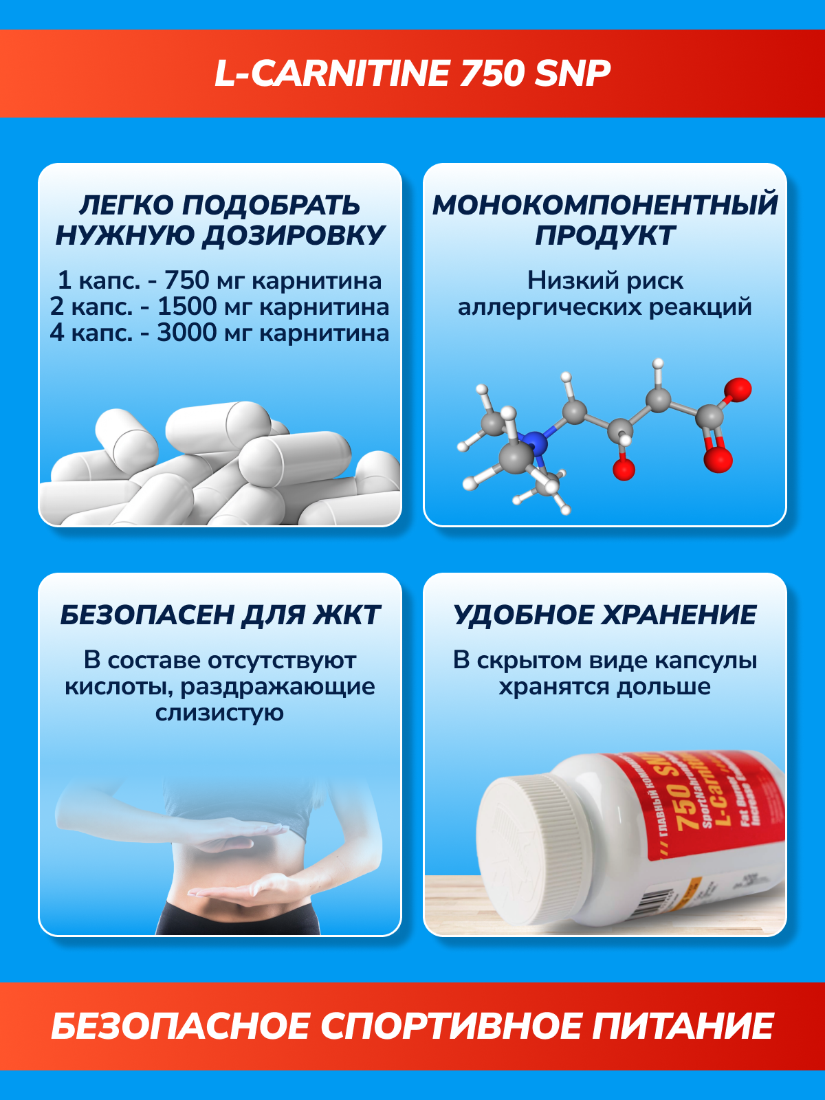 L Carnitine 750 SNP l карнитин в капсулах для похудения Жиросжигатель л карнитин для спорта Витамин B11