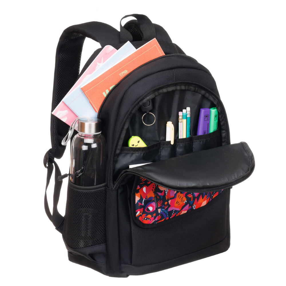 Школьный рюкзак TORBER CLASS X T2743-23-Bl, чёрный с орнаментом, 45х30х18 см, 17 л + Мешок для сменной обуви в подарок!
