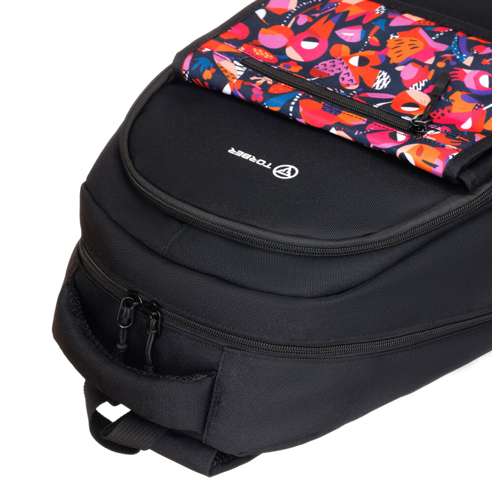 Рюкзак TORBER CLASS X, чёрный с орнаментом, 45 x 30 x 18 см + Мешок для сменной обуви в подарок!