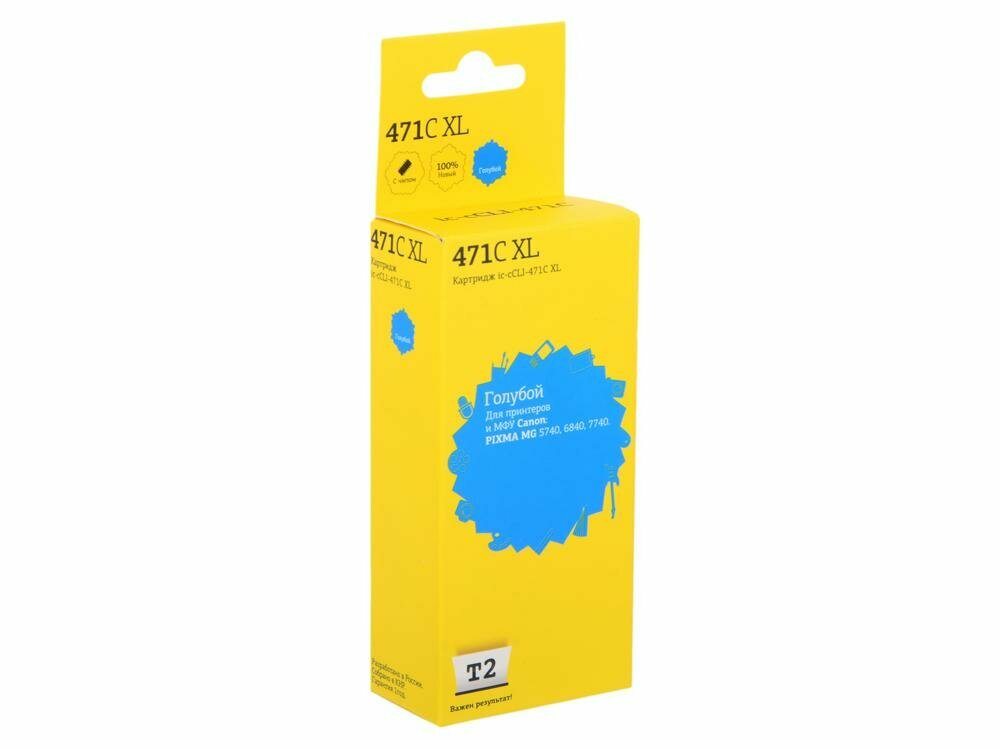 T2 Расходные материалы CLI-471C XL Картридж IC-CCLI-471C XL для Canon PIXMA MG5740 6840 7740 TS5040 6040 8040, голубой, с чипом