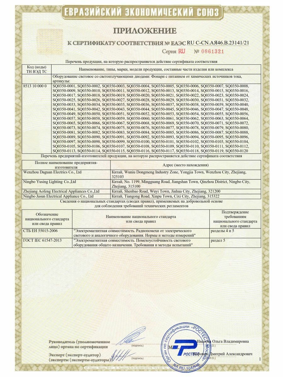 | Тип фонаря | комплект / велосипедный |