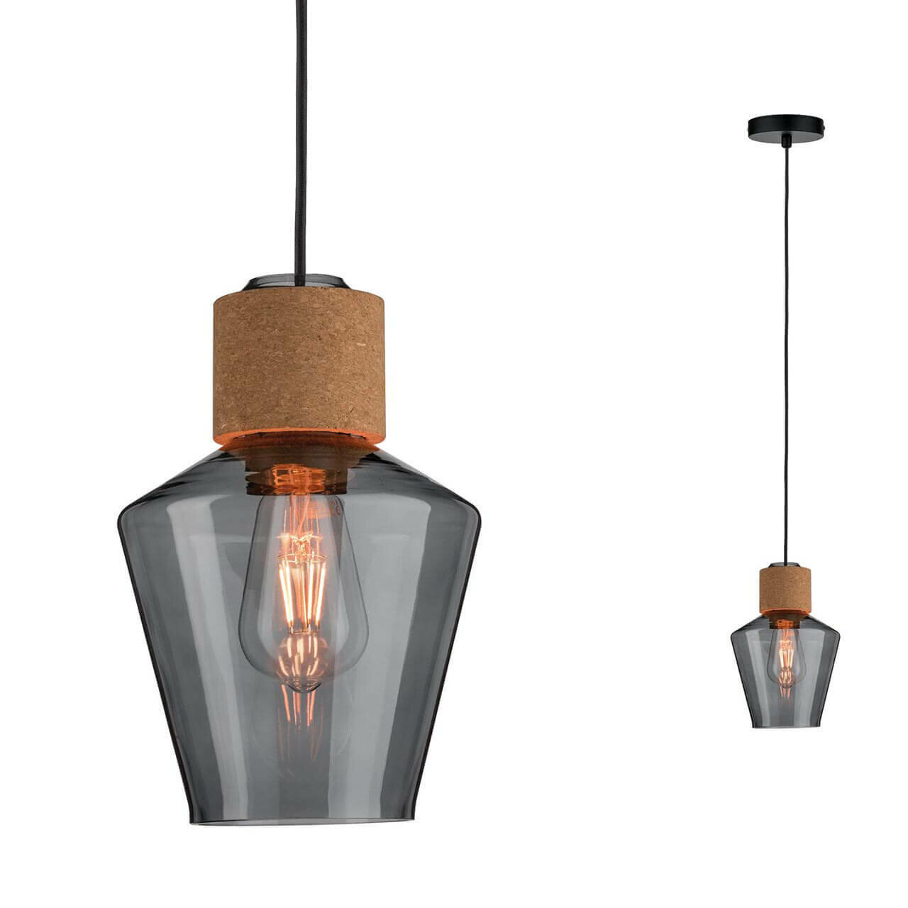 Paulmann 79740 Подвесной светильник Neordic Edla Макс. 1 x 20 Вт подвесной светильник для ламп E27 Дымчатое стекло/пробка/черный Лампа 230 В в комплект не входит