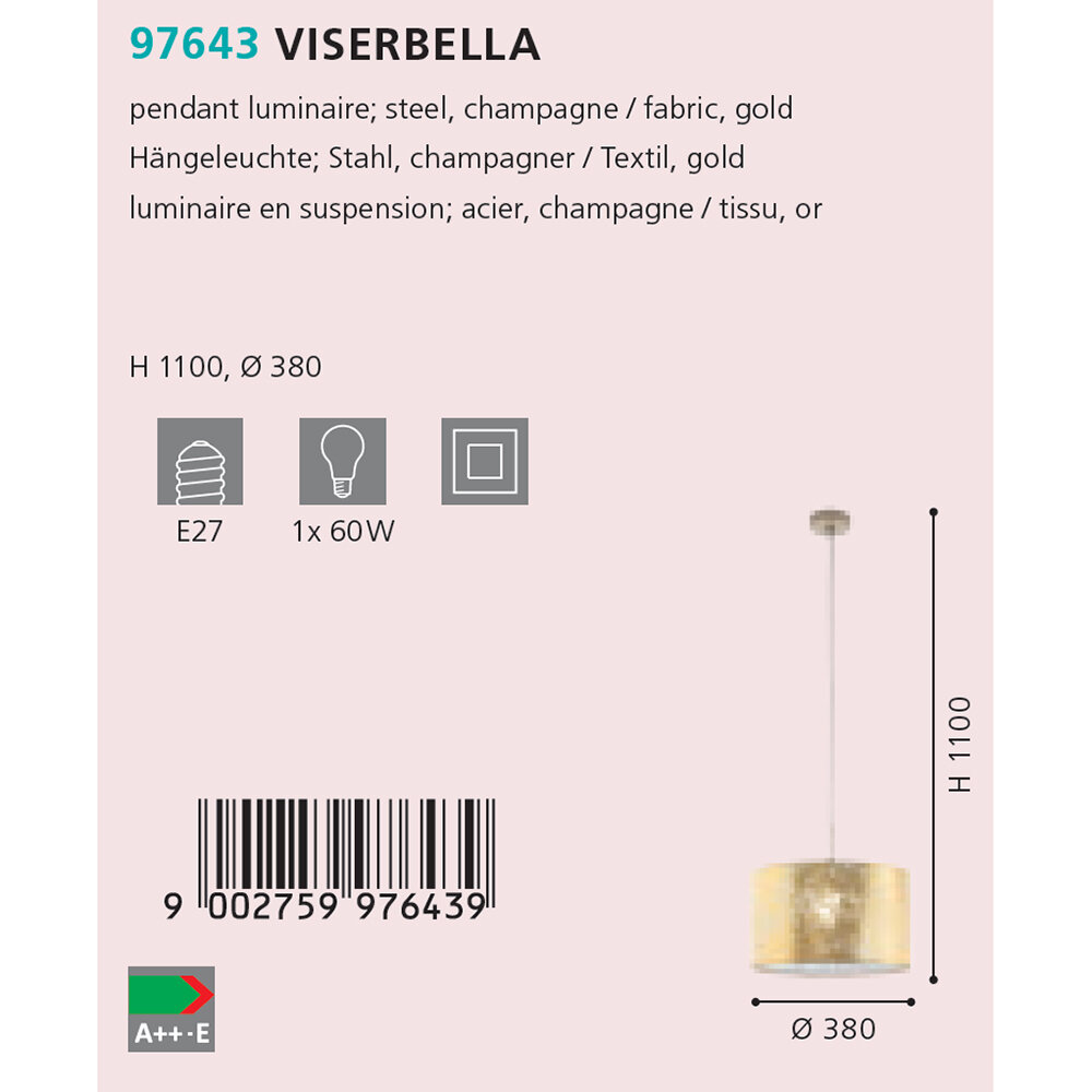 Подвес VISERBELLA, 1х60W (E27), Ø380, H1100, cталь, шампань / текстиль, золотой