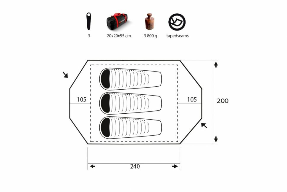 | Особенности | внутренняя палатка / проклеенные швы |