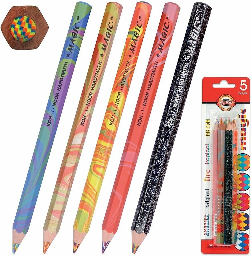 Набор цветных карандашей KOH-I-NOOR разноцветный грифель Magic, 5 шт