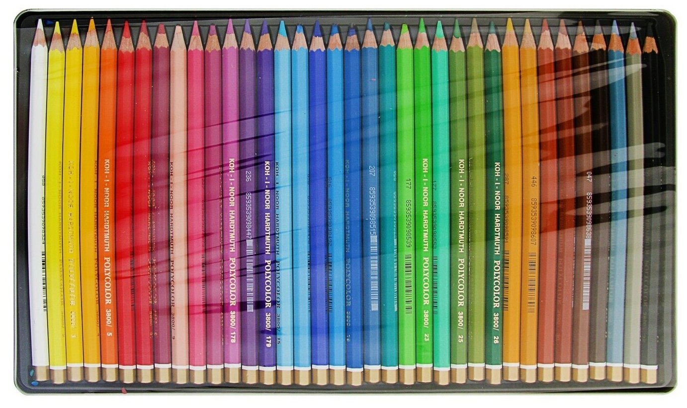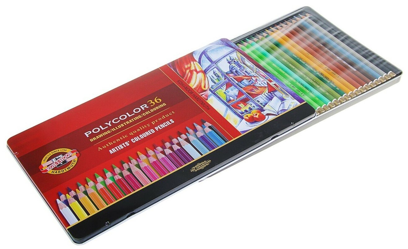 Купить Карандаши цветные KOH-I-NOOR художественные "Polycolor", 36 цветов, 3,8 мм, металлическая коробка (3825/36)