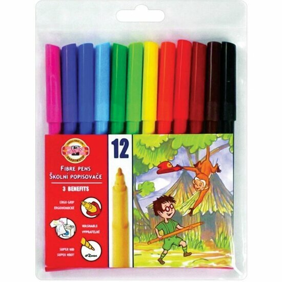 Фломастеры смываемые 12 цветов Koh-I-Noor "Звери", трехгранные, 1 упаковка