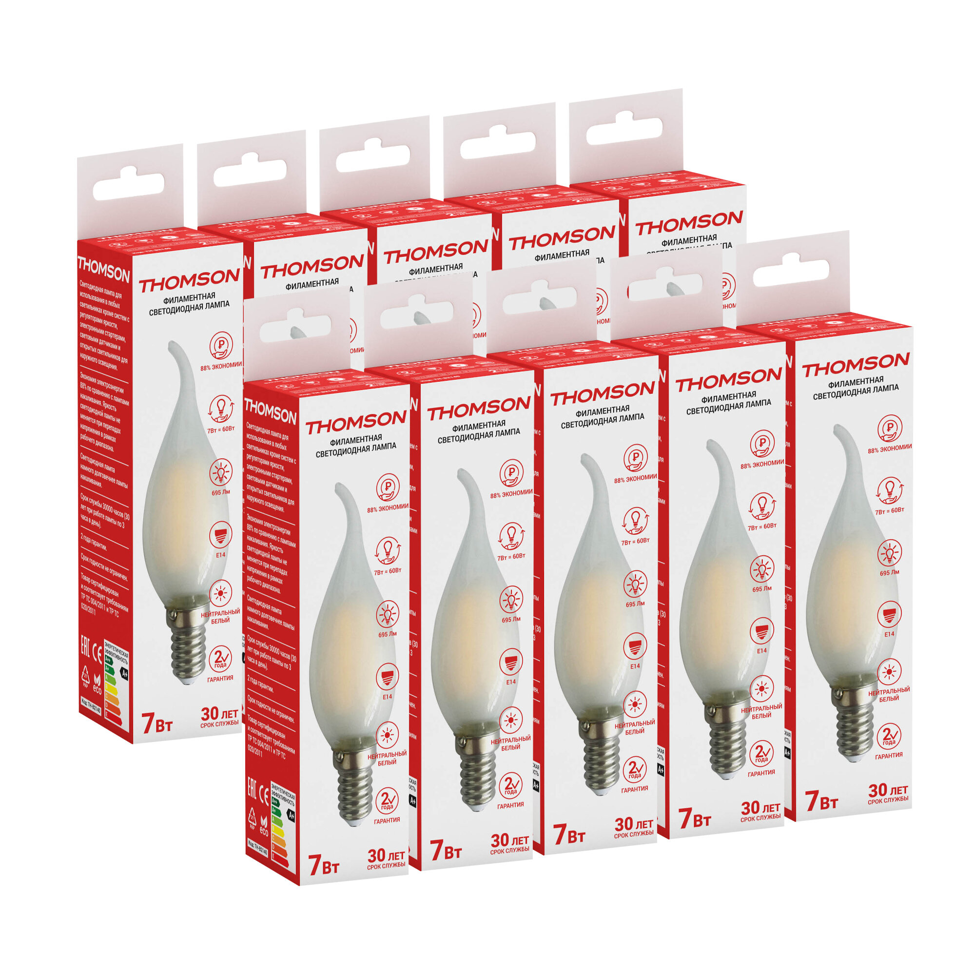 Лампа филаментная Thomson E14, свеча на ветру, 7Вт, 4500К, белый нейтральный, 1 шт.