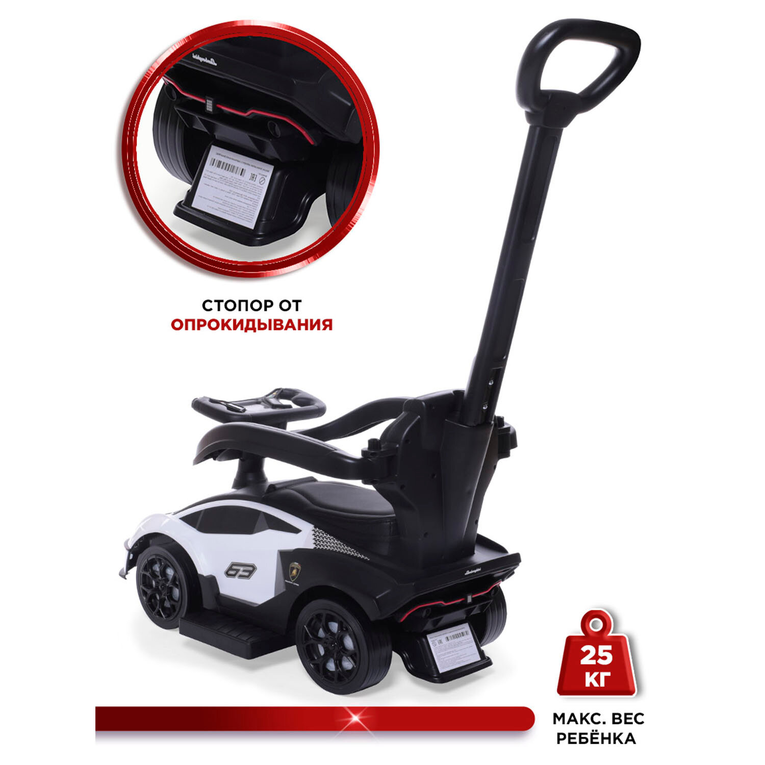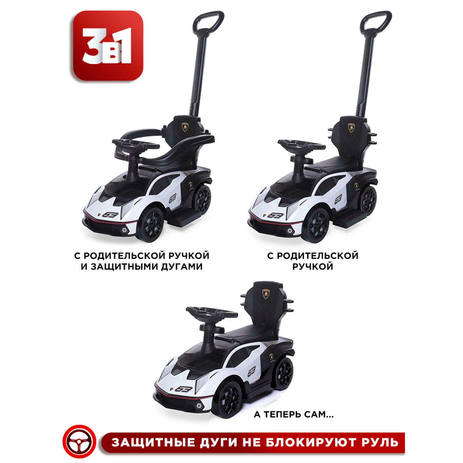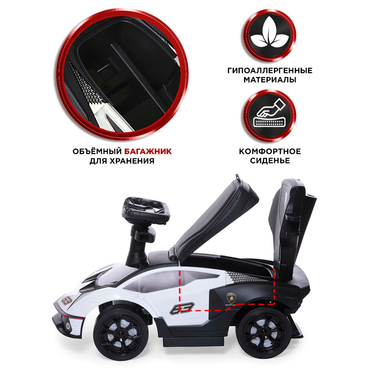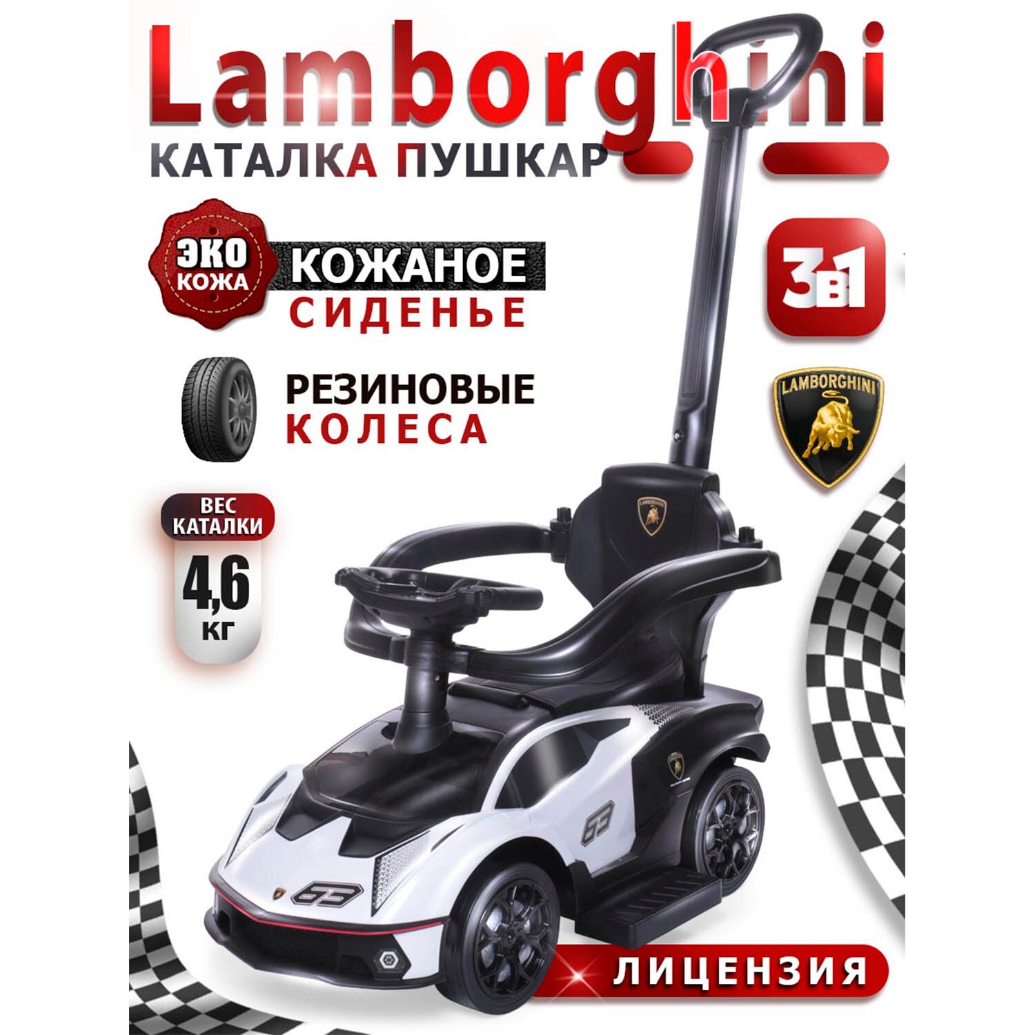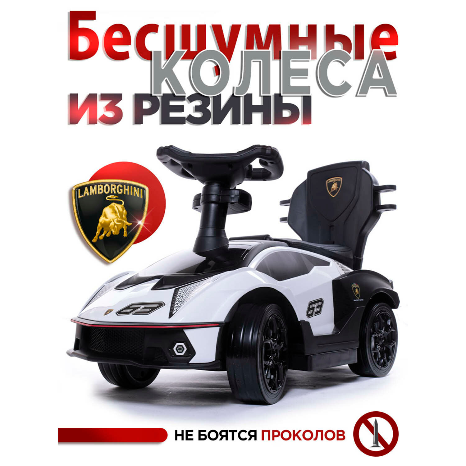 СохранитьBabycare Каталка-толокар Lamborghini с кожаным сиденьем и резиновыми колесами, белый интересное: