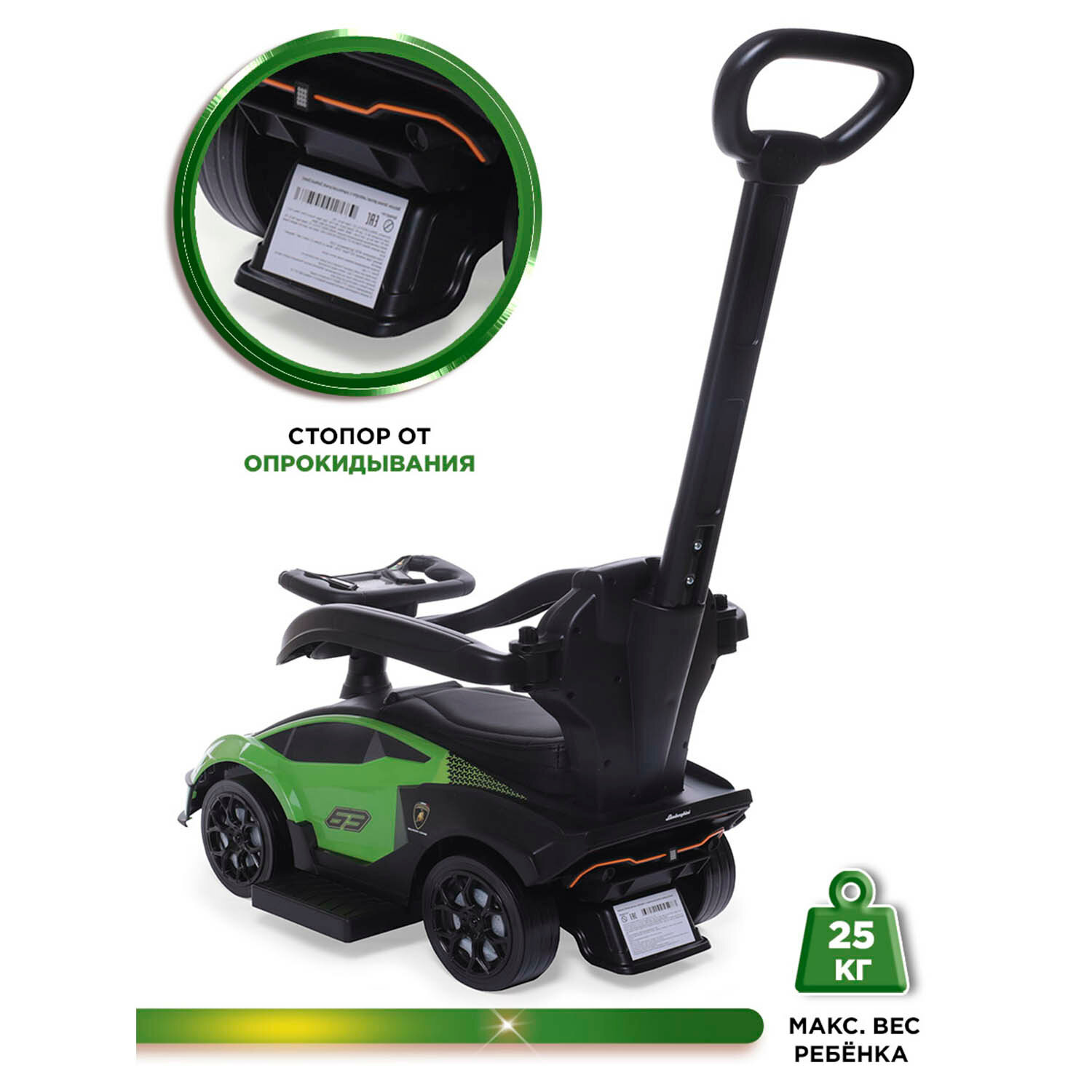 Babycare, Каталка детская Lamborghini кожаное сиденье, резиновые колёса (с родительской ручкой), зеленый