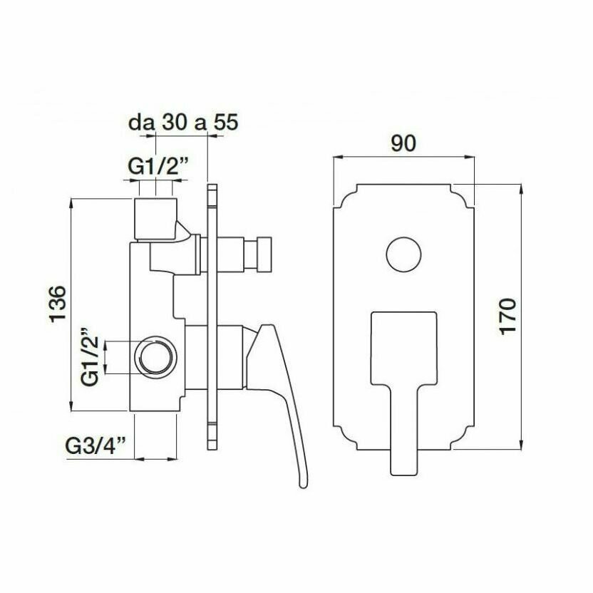 Встраиваемый смеситель с переключателем Cezares OLIMP-VDIM-02-L