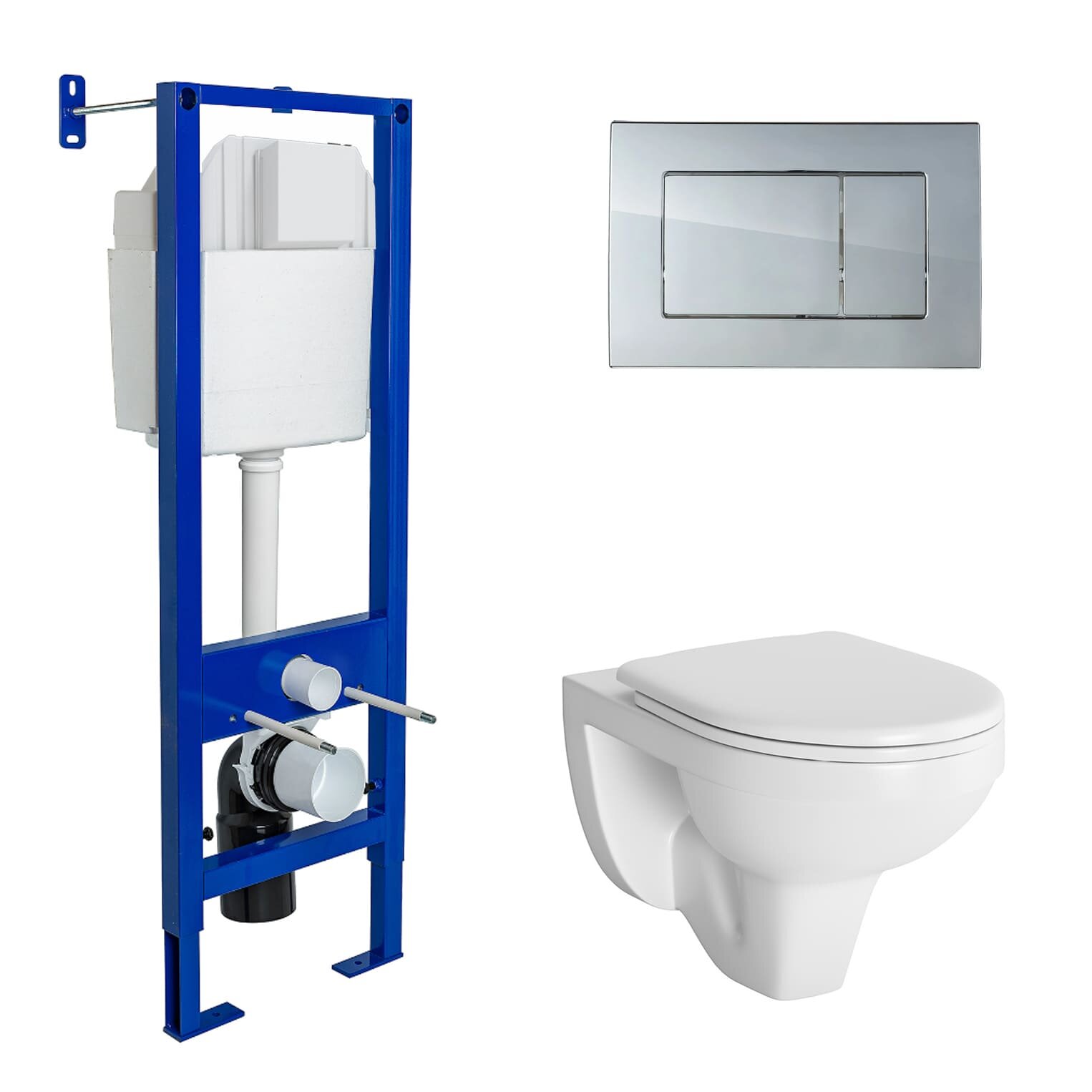 Комплект BERGES для монтажа подвесного унитаза GAMMA: инсталляция, кнопка хром, унитаз с сиденьем