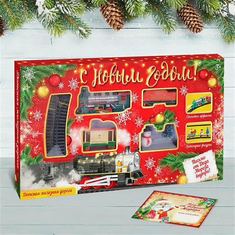 Железная дорога "С Новым Годом", работает от батареек, для мальчиков