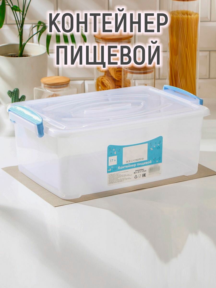 Купить Контейнер пищевой, 17 л, 46×31×17 см, прямоугольный, цвет прозрачный, голубой