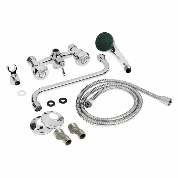 Смеситель для ванны ZEIN Z90350155, кран-букса латунь 1/2", душевая лейка и шланг, хром ZEIN 5799992 .