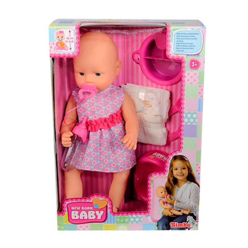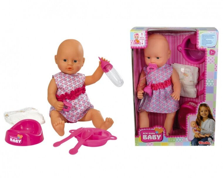 Купить Simba New Born Baby Пупс 38 см интерактивный пьет, писает, с аксессуарами 5032533 с 3 лет